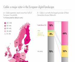 Kabeloperatørene leverer tjenester til mer enn halvparten av de europeiske husstandene, kabeloperatørene er for tiden størst i leveranse av NGA (Next Generation Access Networks), og har den fremste teknologien som kan tilby gigabit hastigheter for bredbånd. Se utdrag av en rapport fra konsulentselskapet Arthur D. Little her, eller klikk på bildet under.